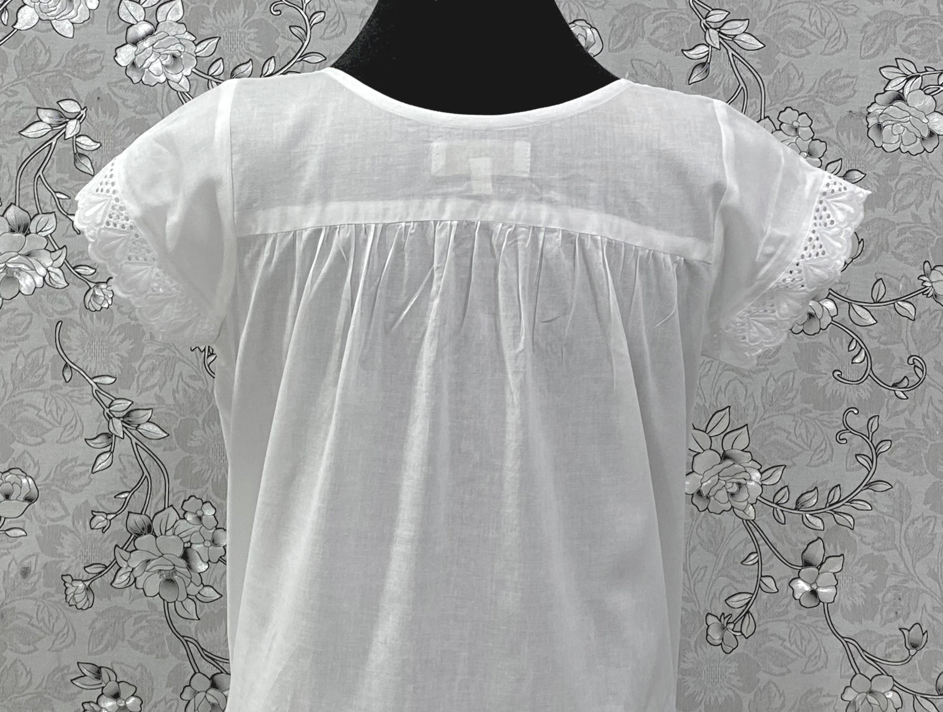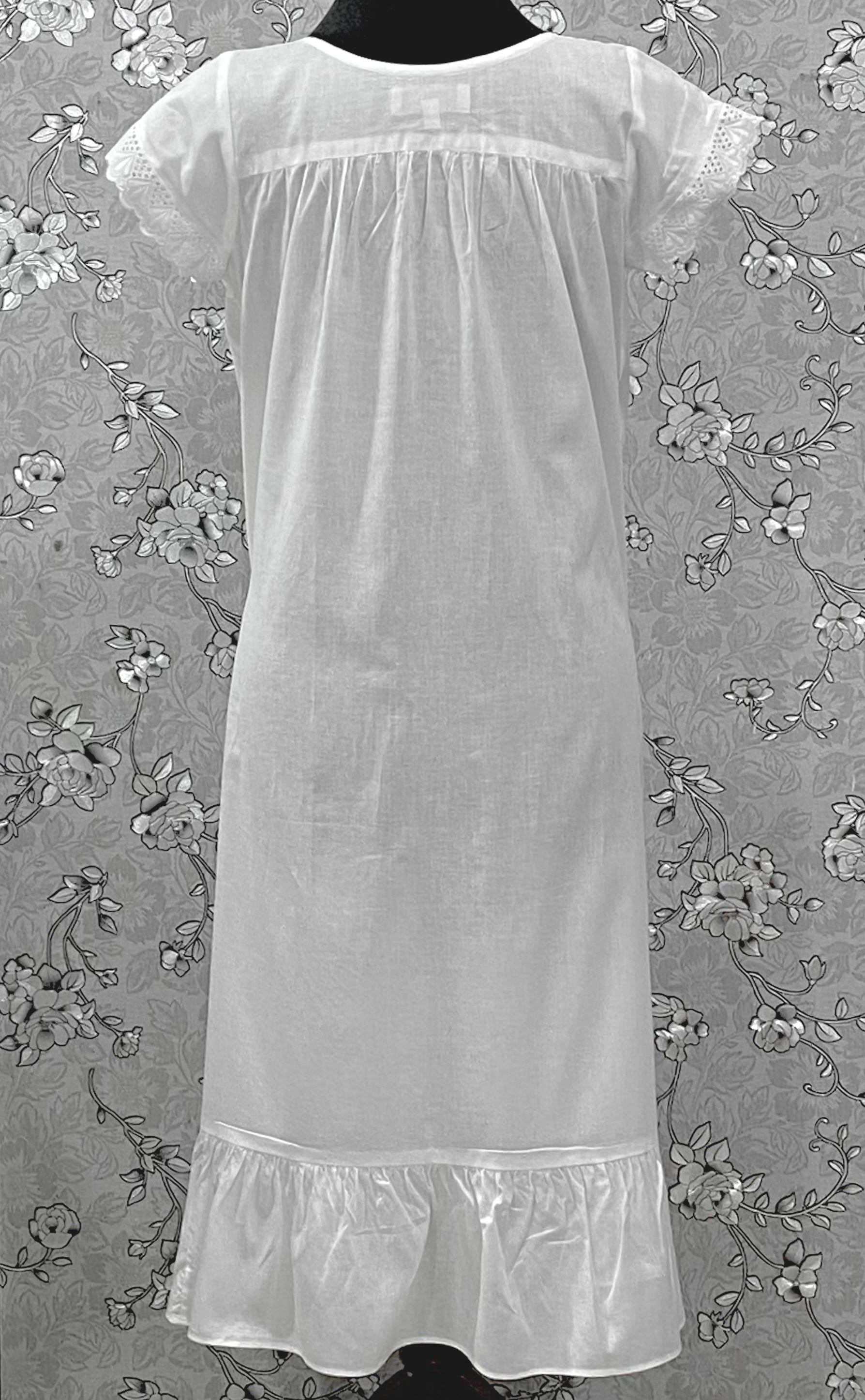 SoieRose 100% Cotton Victorian Nightgown – White Eyelet Lace Cap Sleeve Nightdress – SR-1209