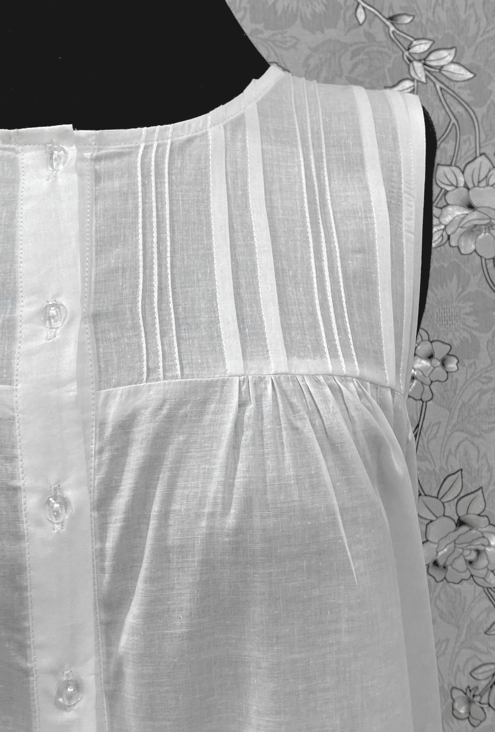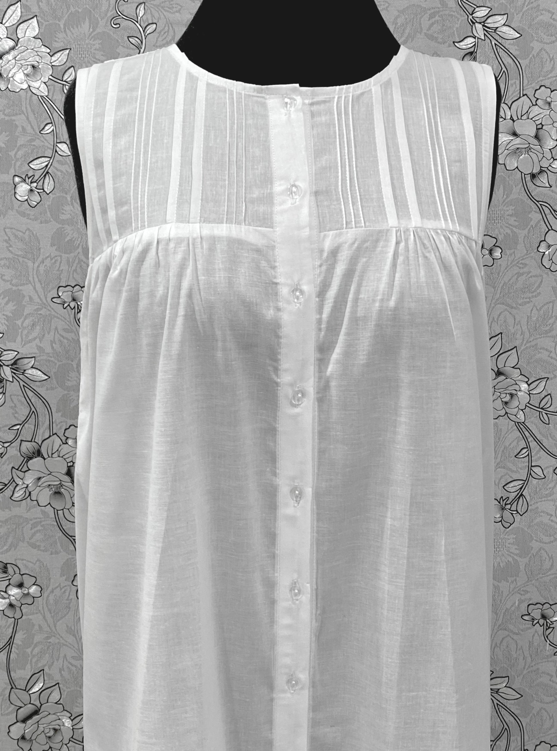 SoieRose 100% Cotton Victorian White Nightgown – Sleeveless Button Front Pintuck Sleepwear – SR-1205
