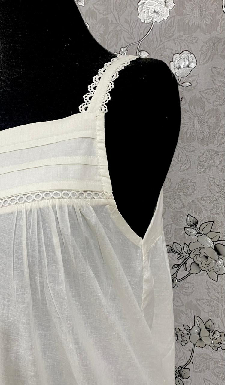 SoieRose 100% Cotton Victorian Sleeveless Nightgown - Ivory - SR-1070
