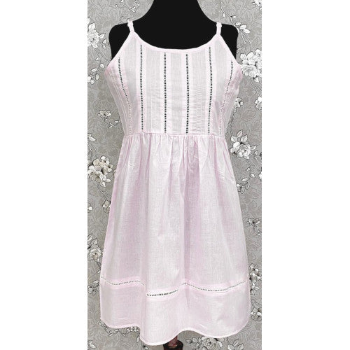SoieRose 100% Cotton Victorian Spaghetti Strap Nightgown - Sleek Fit - Pale Pink - SR1125