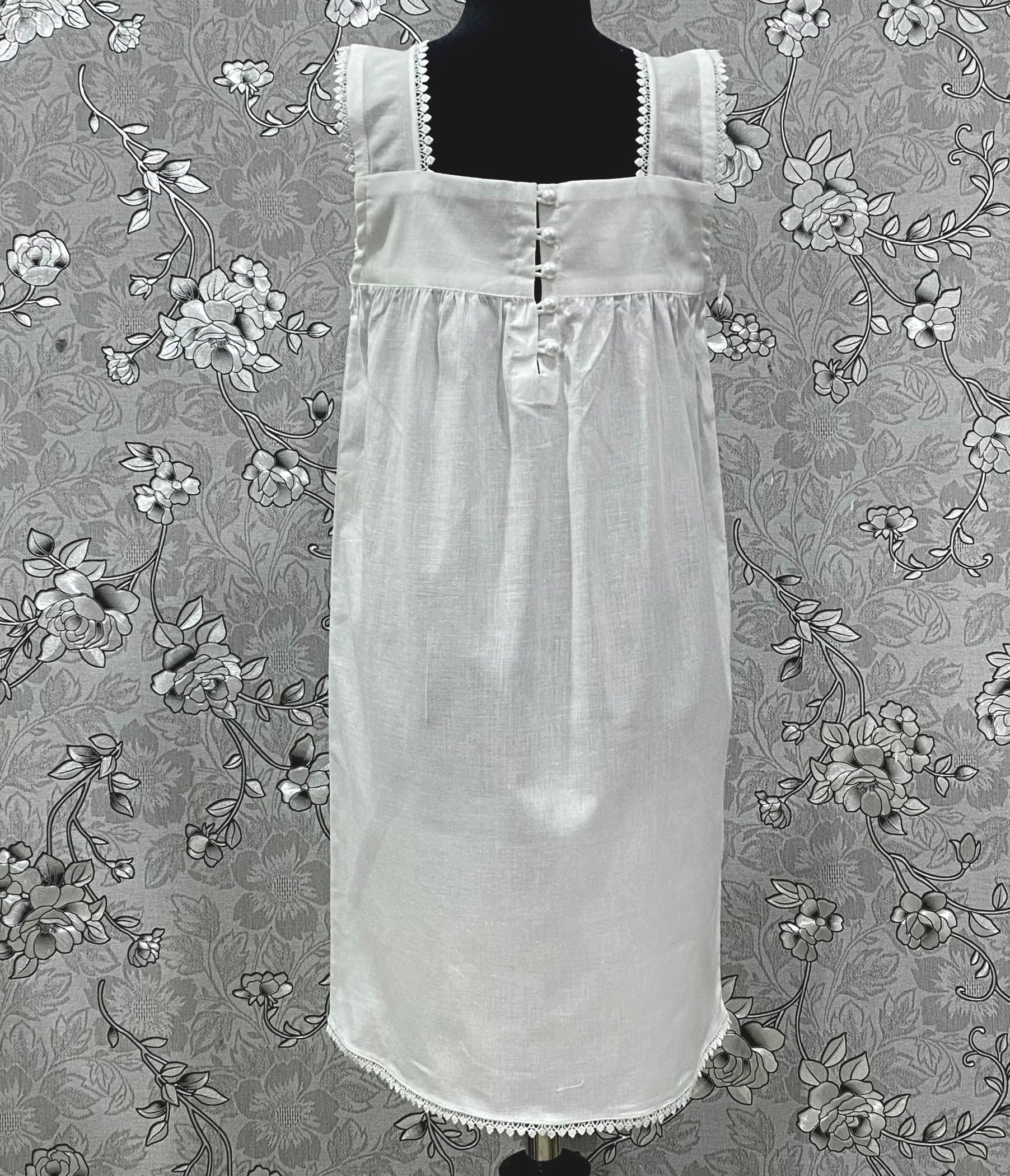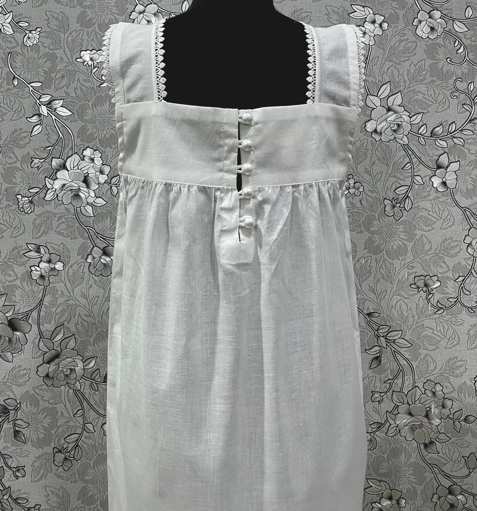 A charming vintage-inspired Victorian nightgown designed especially for young girls. Crafted from 100% pure cotton, it features intricate lace detailing and a graceful square neckline. Soft, breathable, and elegant — this timeless piece brings comfort and beauty to bedtime or special occasions.