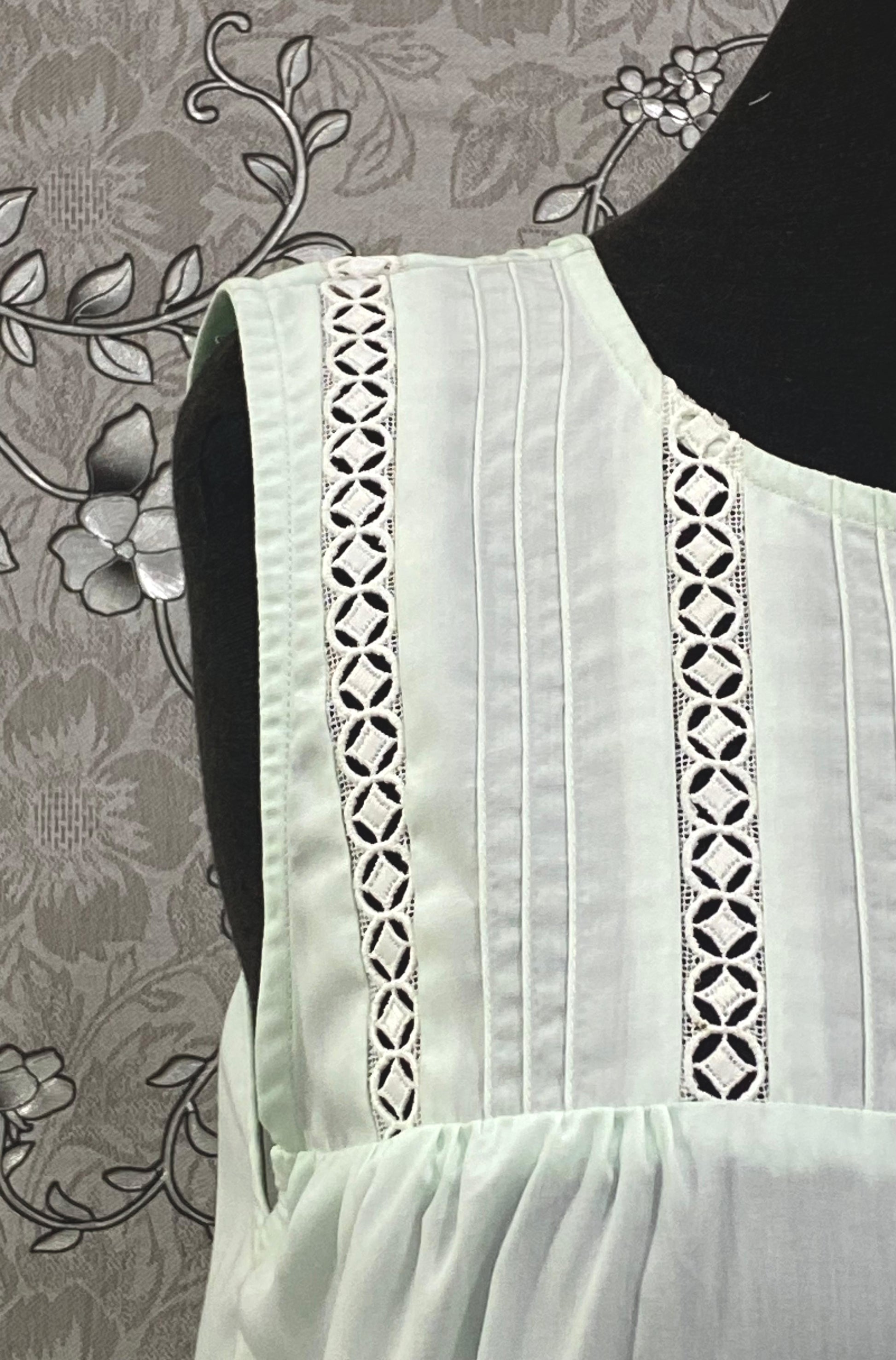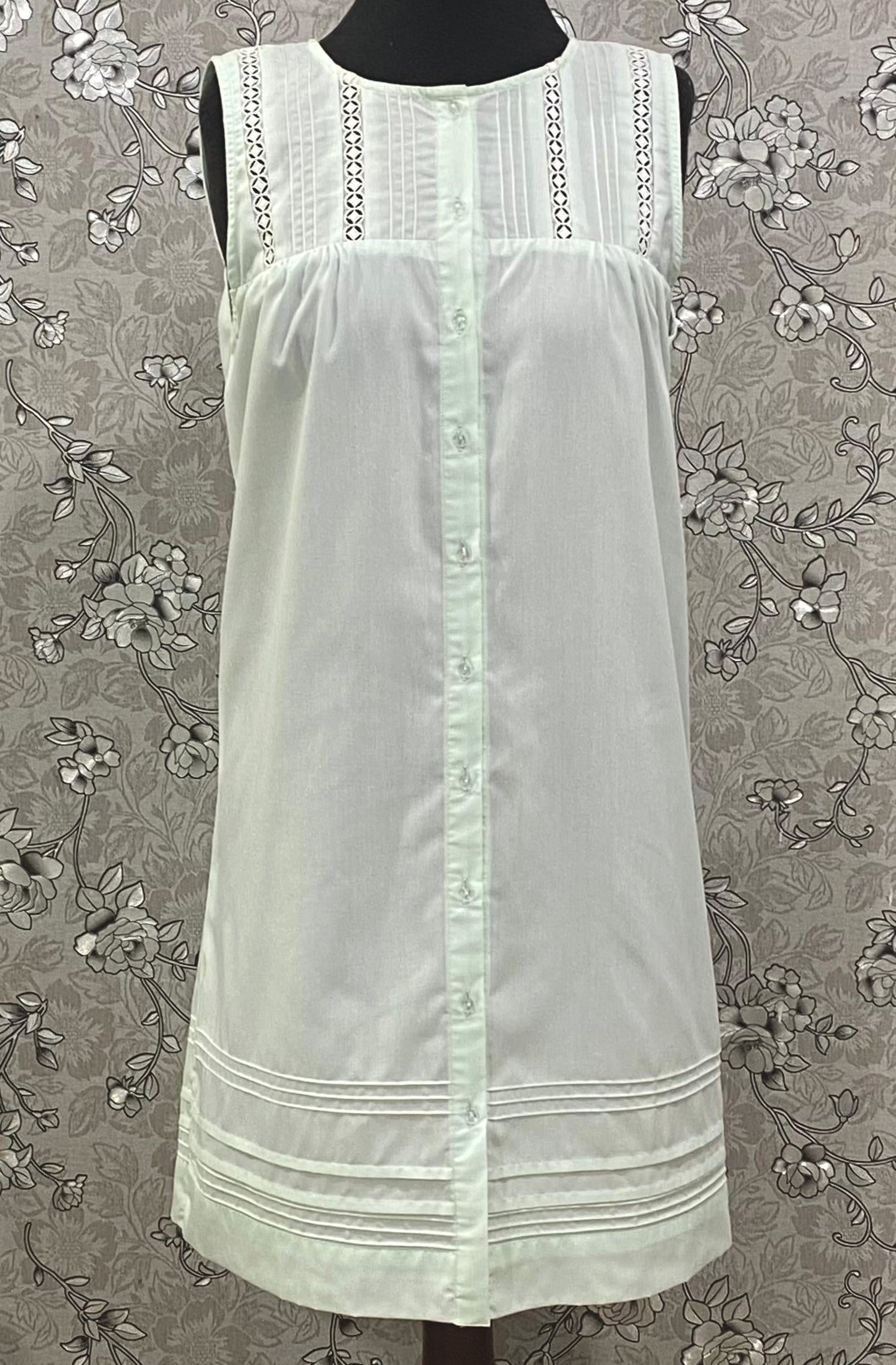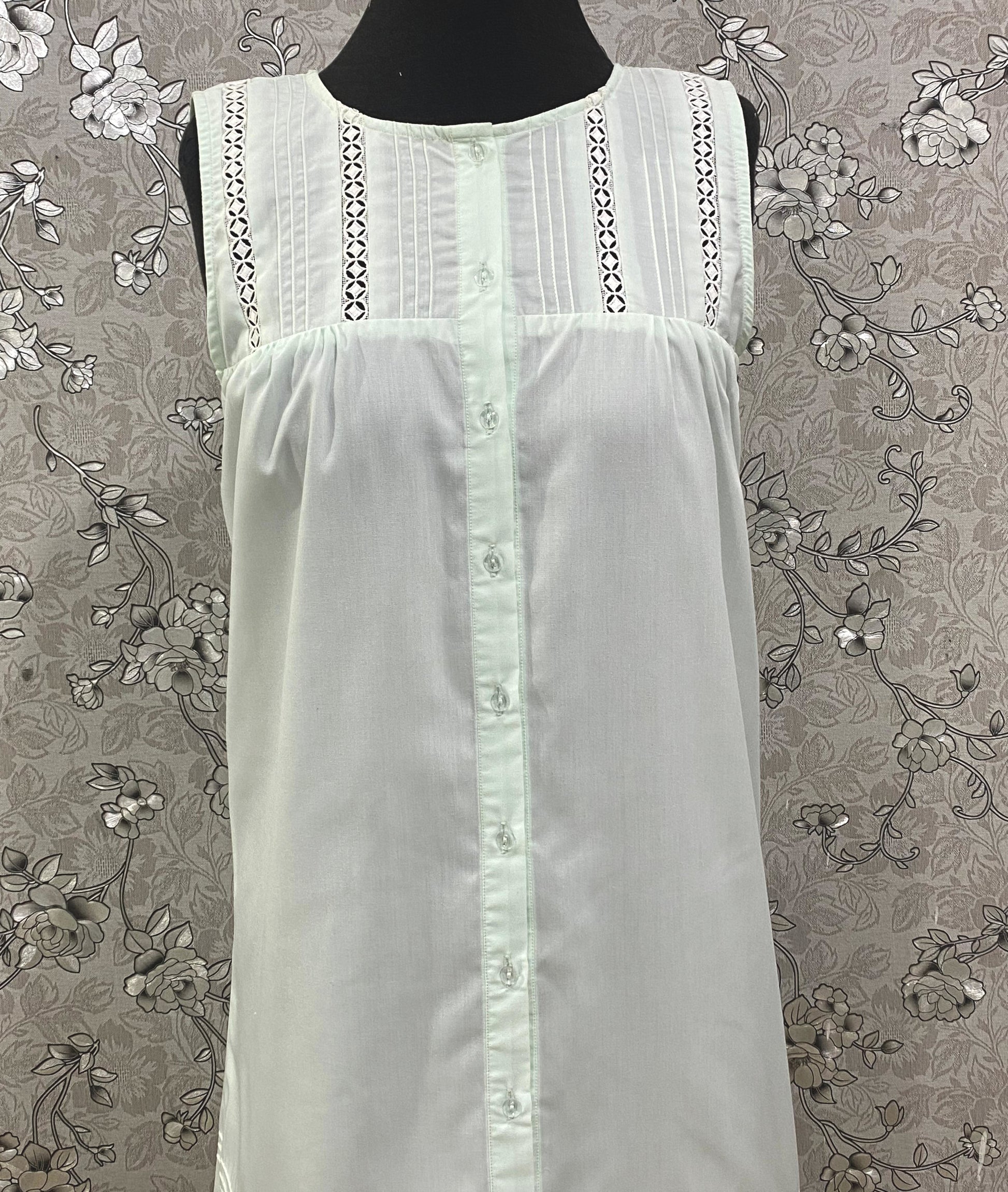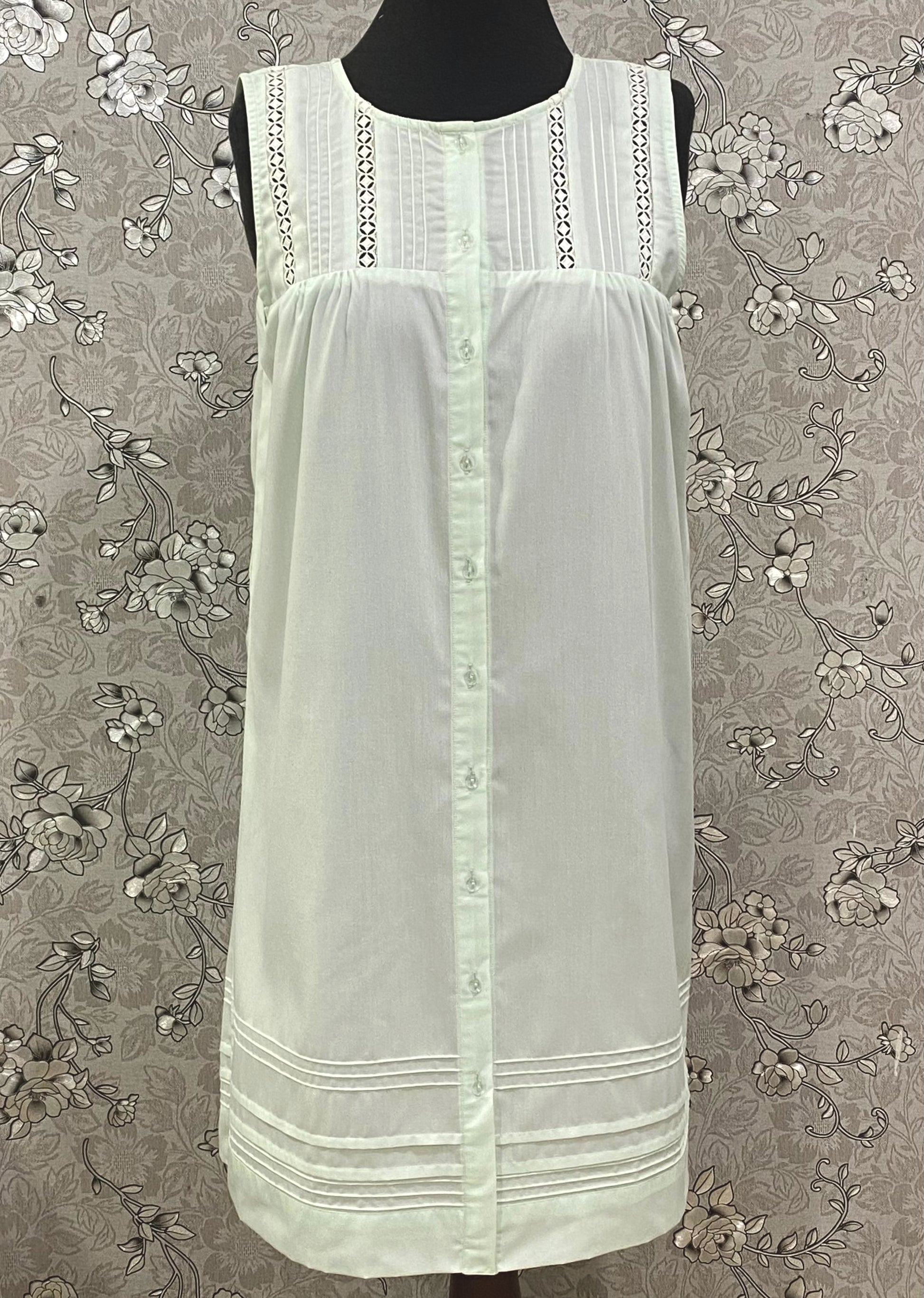 SoieRose Mint Victorian Cotton Nightgown – SR-1197 – Sleeveless Button-Down Nightdress