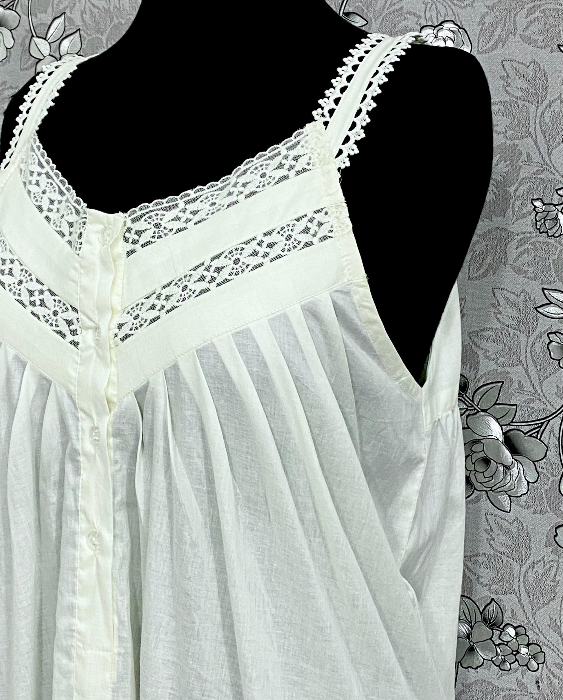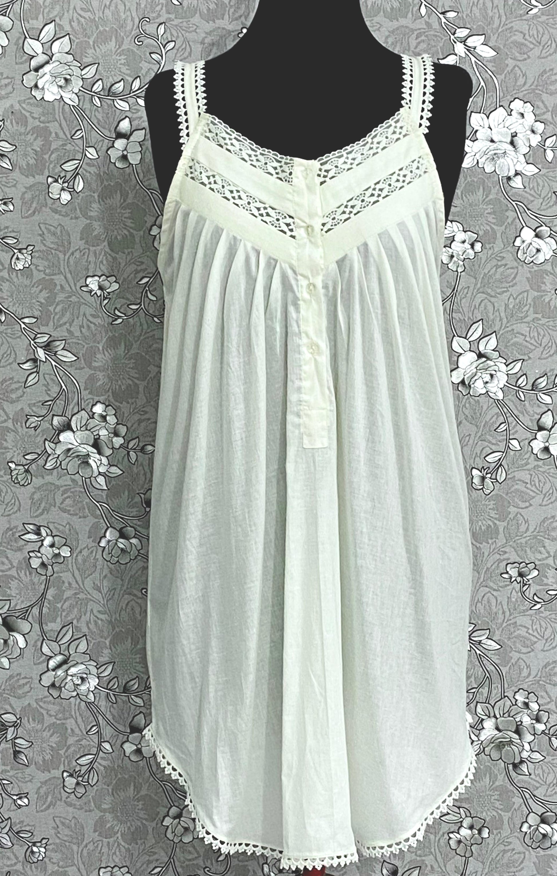 Slip into timeless elegance with the SoieRose SR-1179 Victorian Nightgown — a beautiful blend of comfort and classic charm. Crafted from soft, breathable 100% cotton, this sleeveless nightgown features delicate lace trim on the straps and hem, with a pleated front and button-down detailing for a vintage-inspired finish.