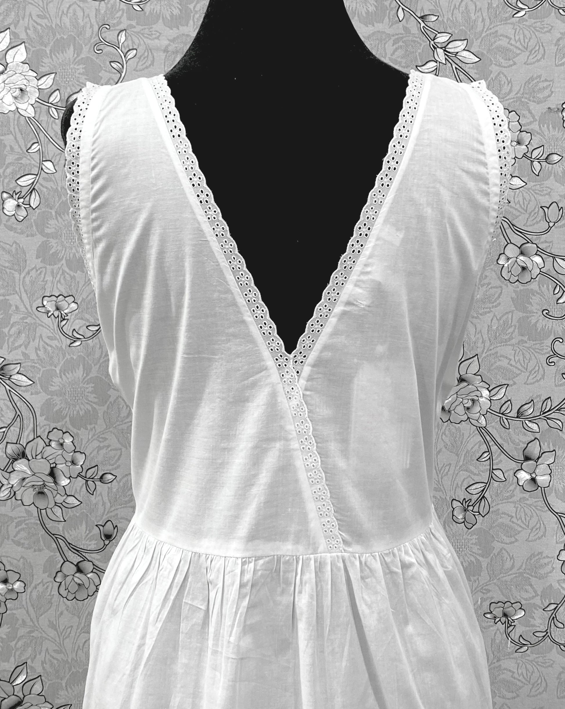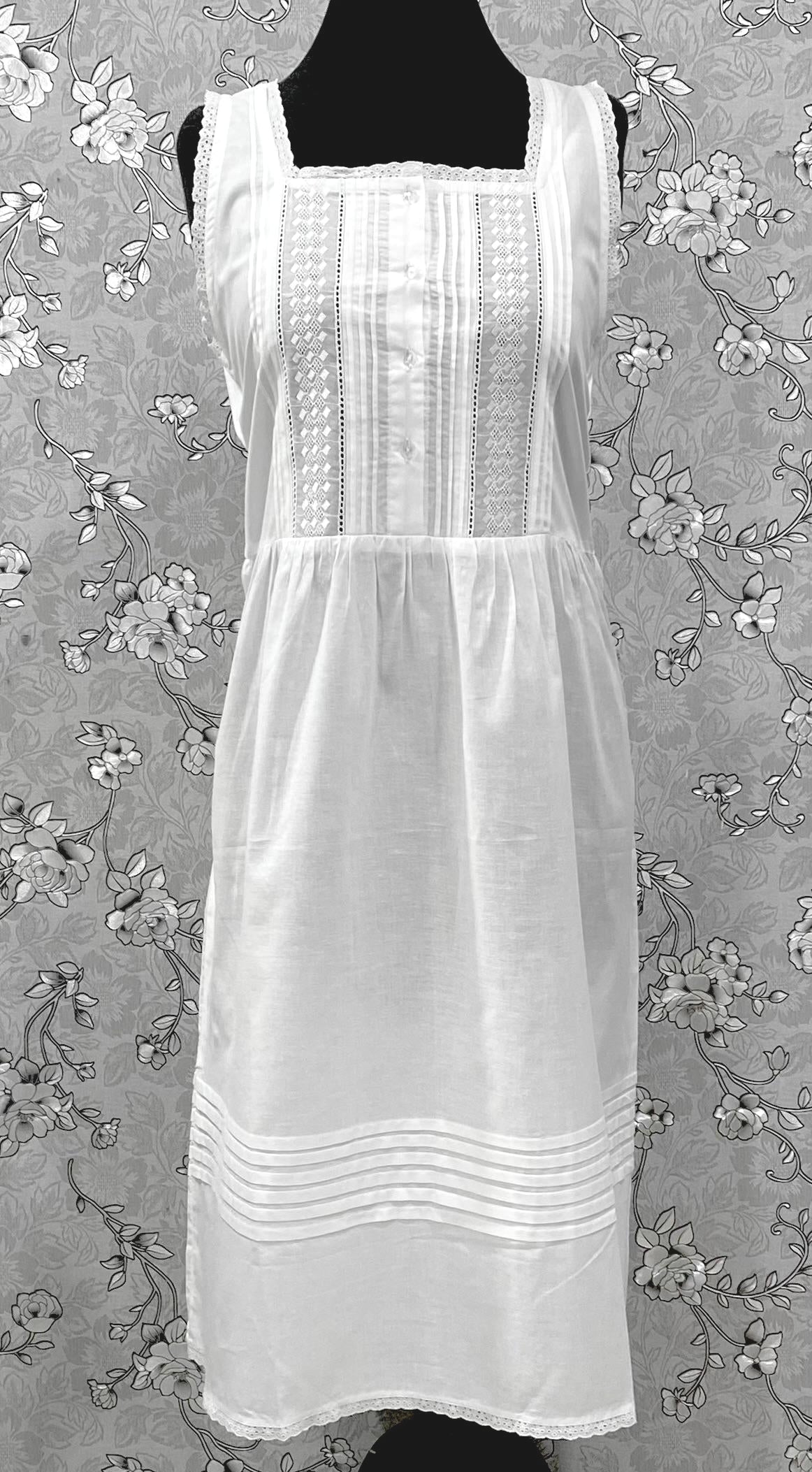 SoieRose Victorian Cotton Nightgown – Sleeveless Vintage-Style Sleepwear with Lace Trim & Pintuck - SR1225