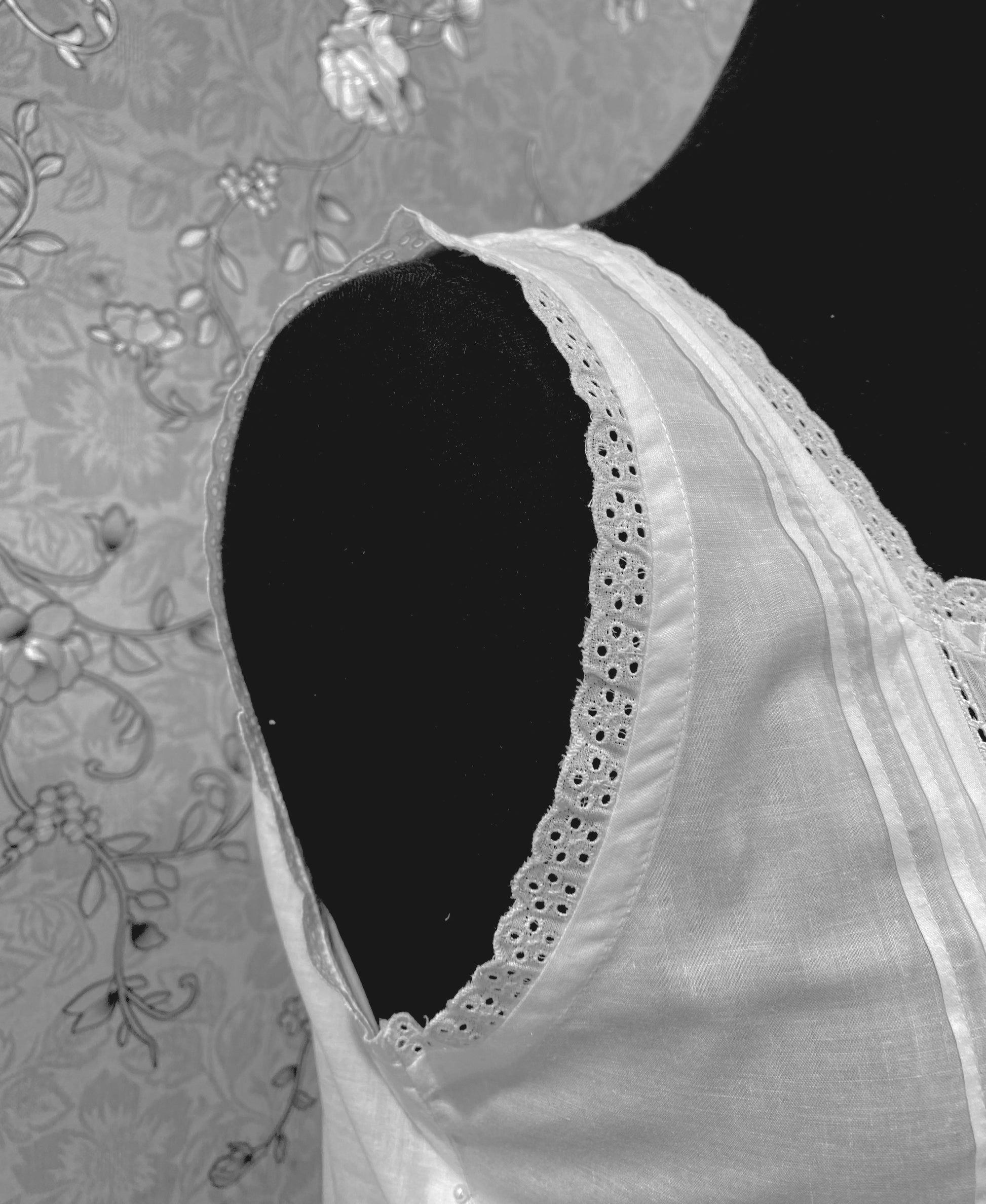 • Intricate pintuck and lace-trimmed bodice for vintage elegance