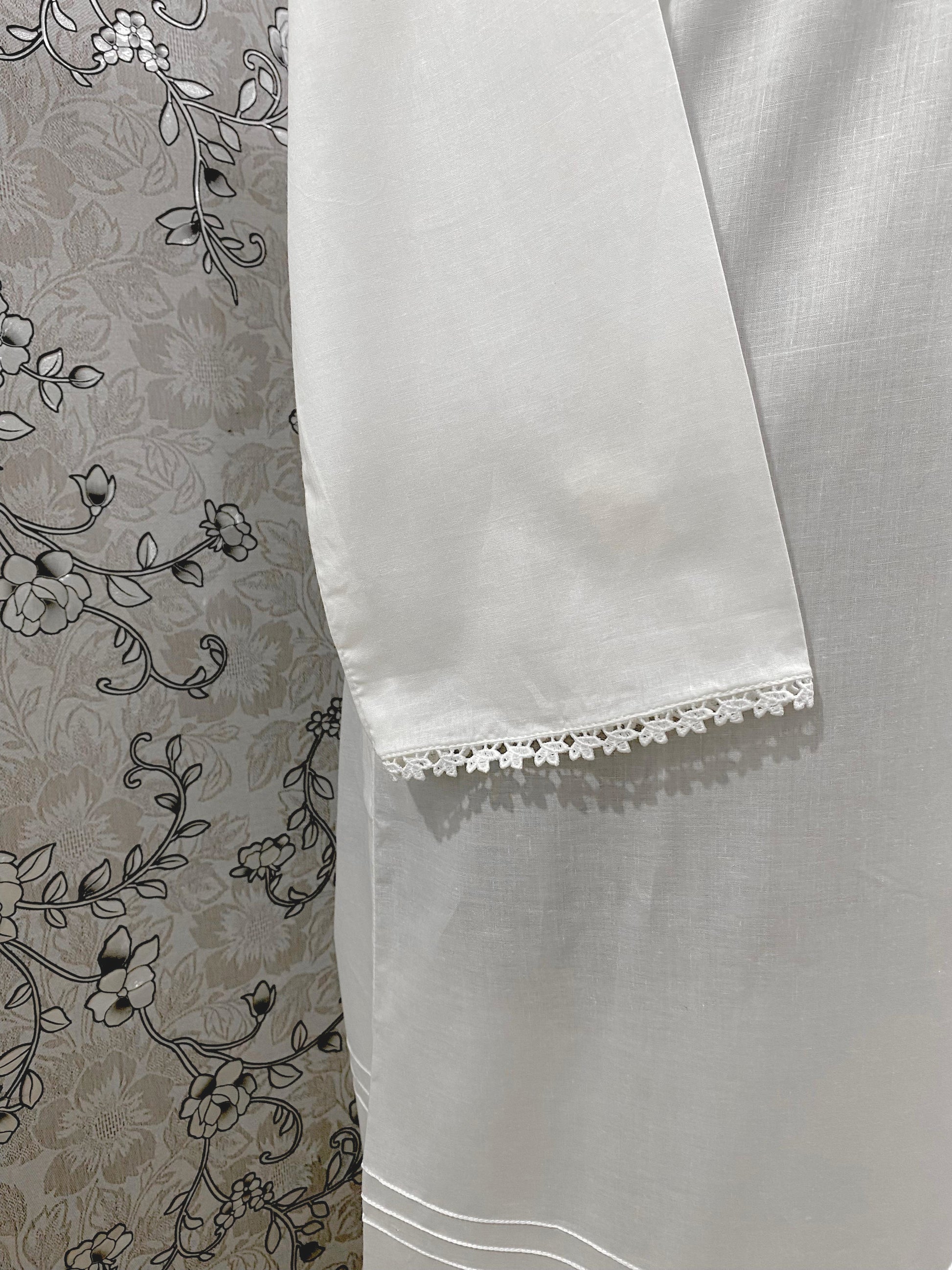 100% lightweight cotton with delicate floral lace accents