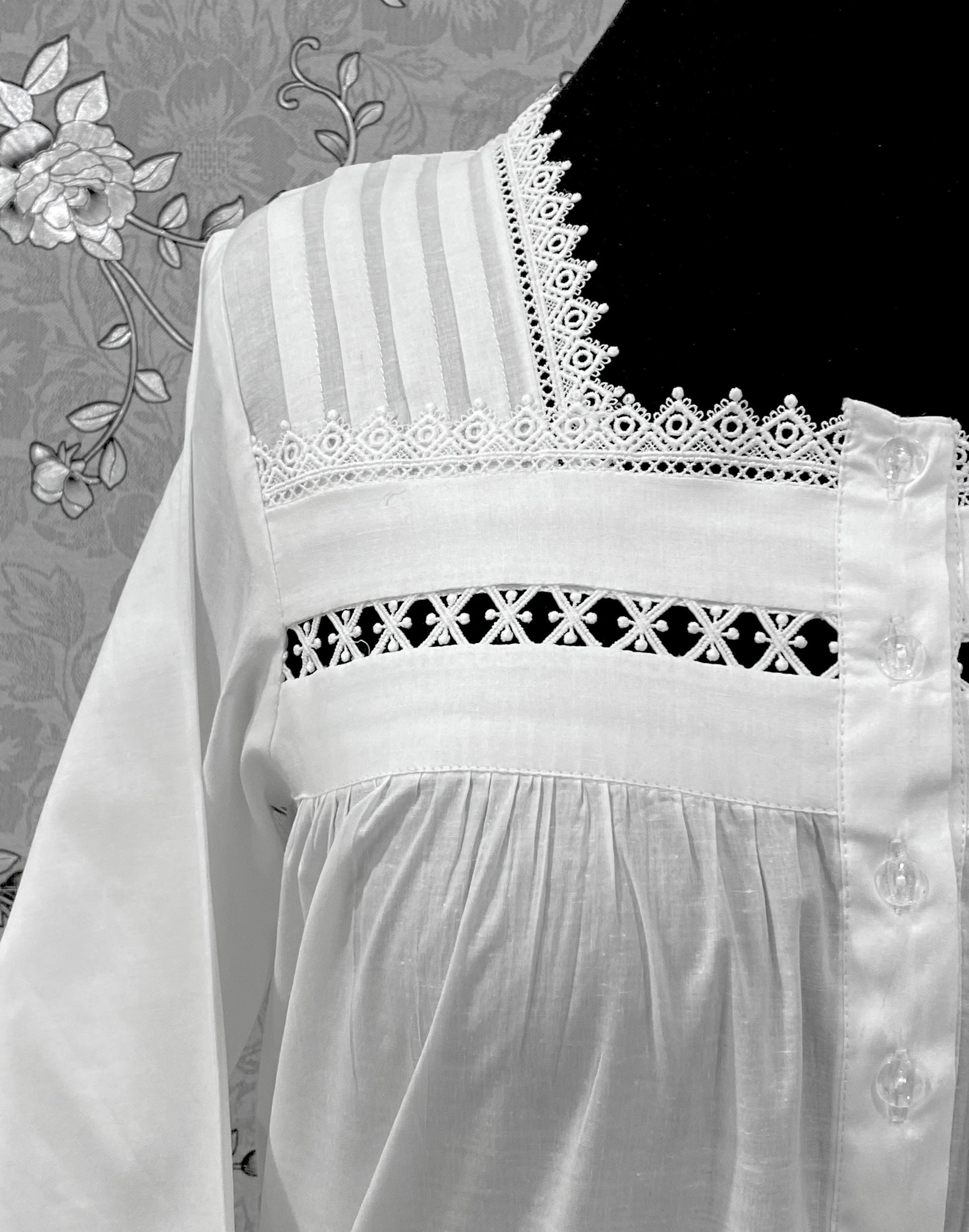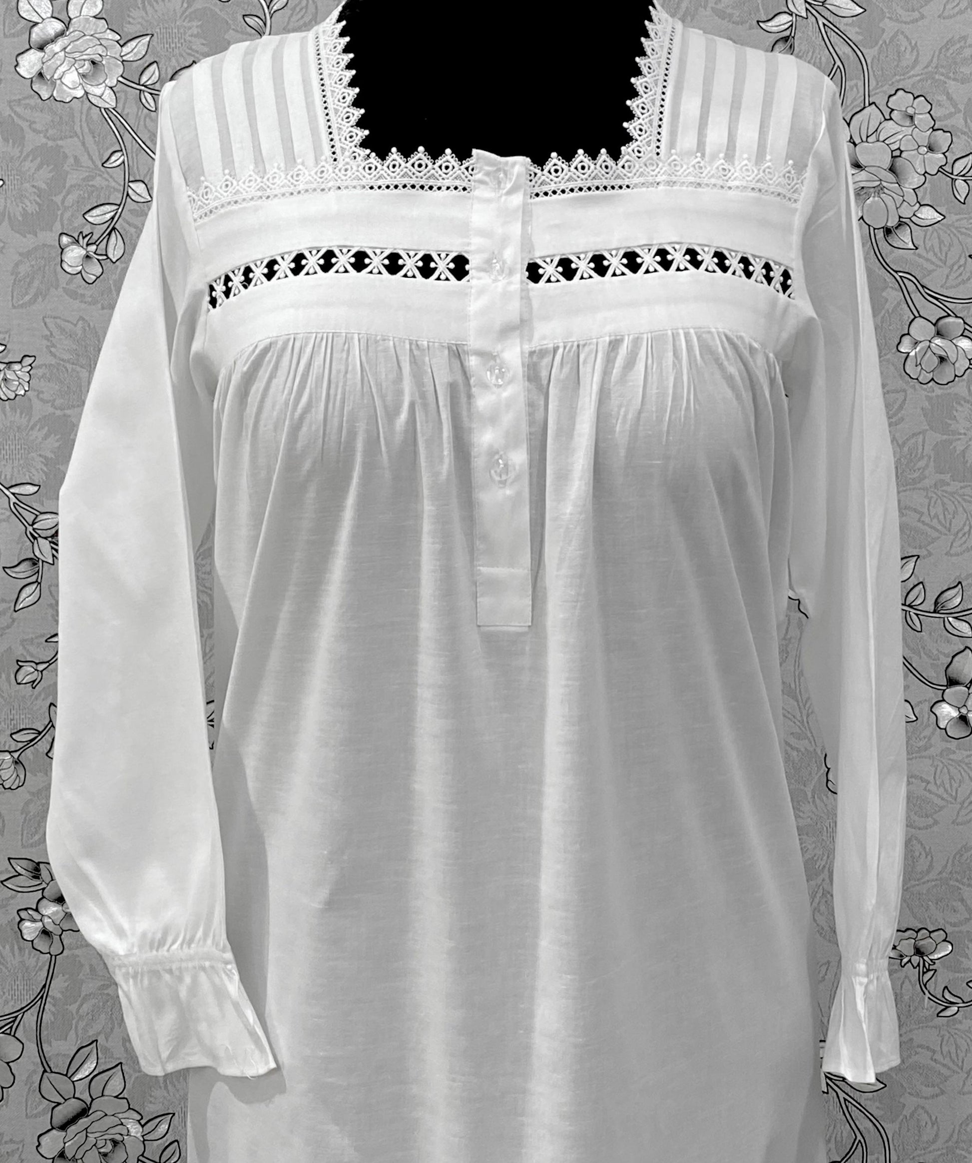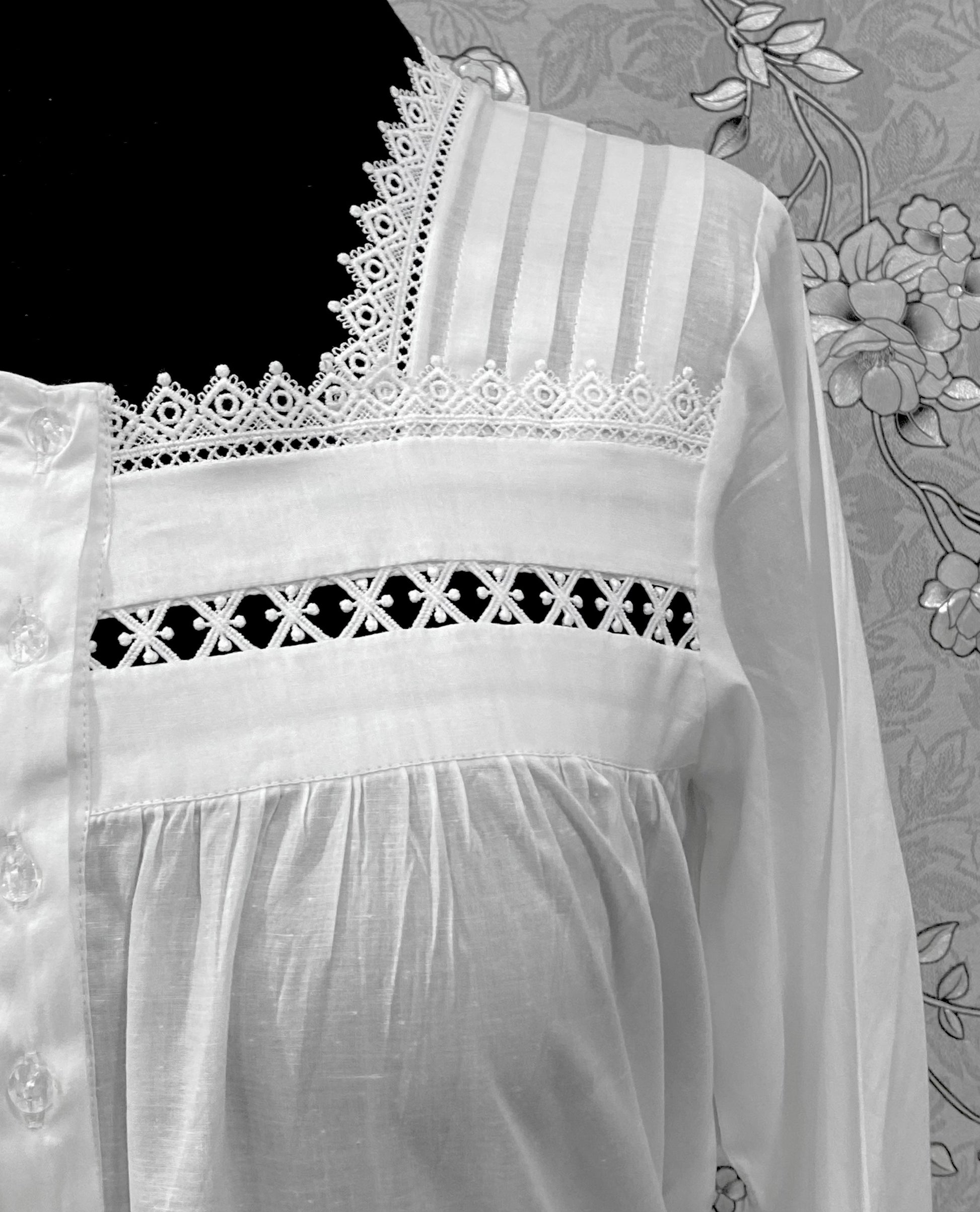 Victorian Cotton Nightgown | SoieRose SR-1219 | Long Sleeve White Sleep Dress | Lace & Pintuck Detailing